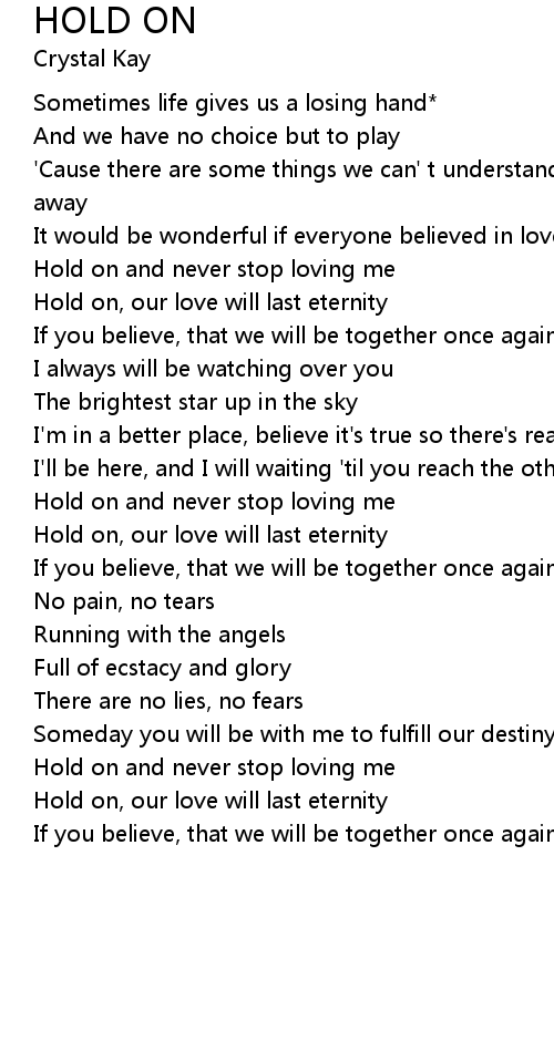 If you believe, that we will be together once again someday hold on |