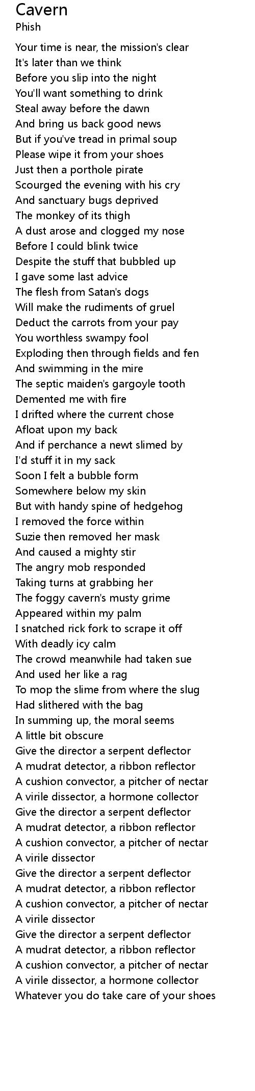 The foggy cavern's musty grime |