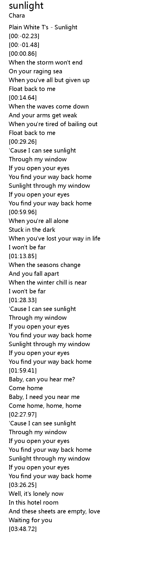 | [00:-03.32] | Plain White T's - Sunlight |