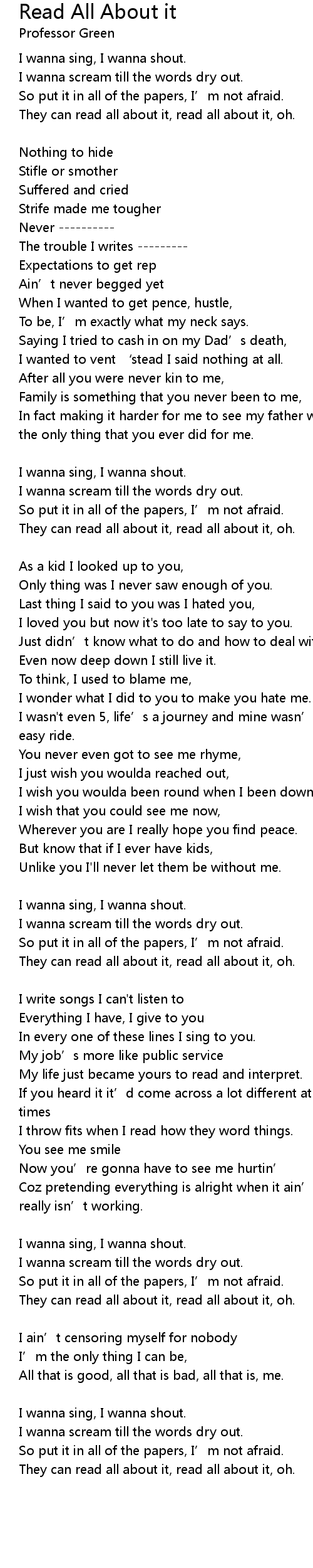 | 歌曲 | Read All About it |