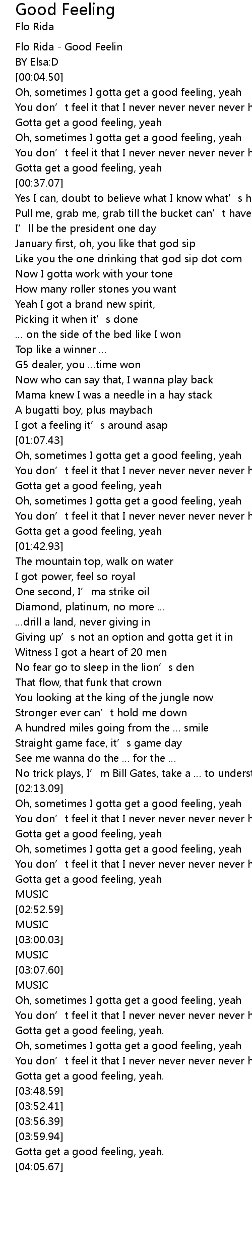 | [00:00.00] | Flo Rida - Good Feelin |
