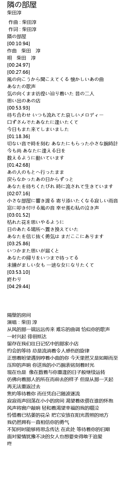 | [00:00.00] | zuò qǔ : chái tián chún |