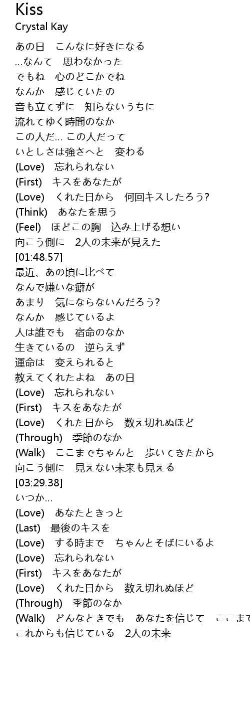 | [01:20.34] | (Love) くれた日から 何回キスしたろう? |