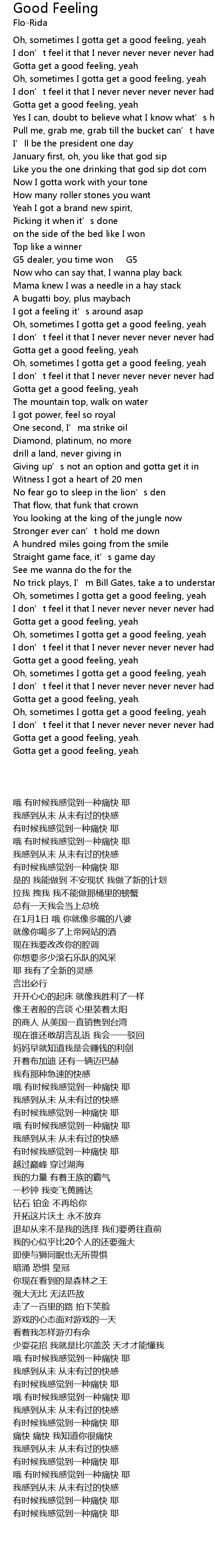 | [00:06.700] | Oh, sometimes I gotta get a good feeling, yeah |