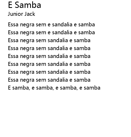 | E samba, e samba, e samba, e samba |