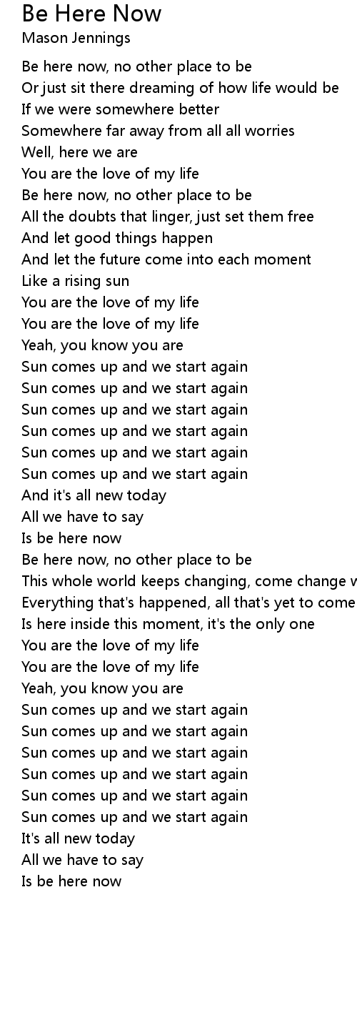 Is be here now |