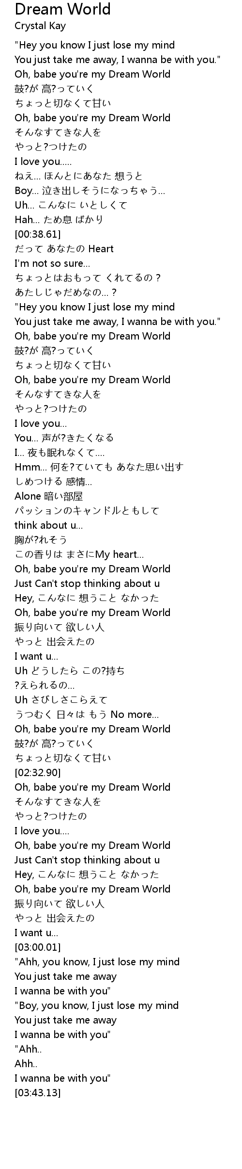 | [00:57.20] | Oh, babe you're my Dream World |