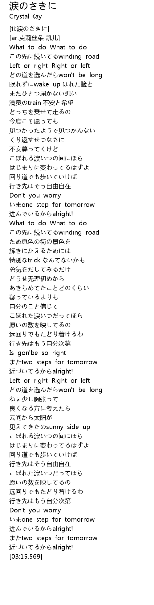 | [02:56.284] | 远回りでもたどり着けるわ |