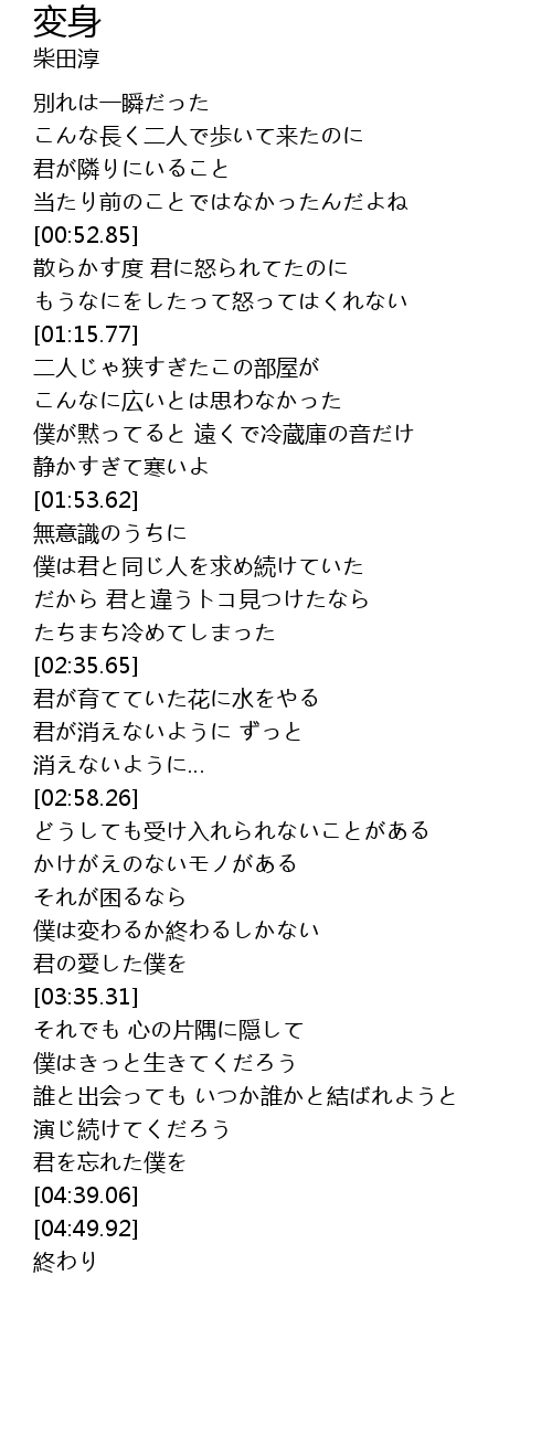| [03:19.75] | 僕は変わるか終わるしかない |