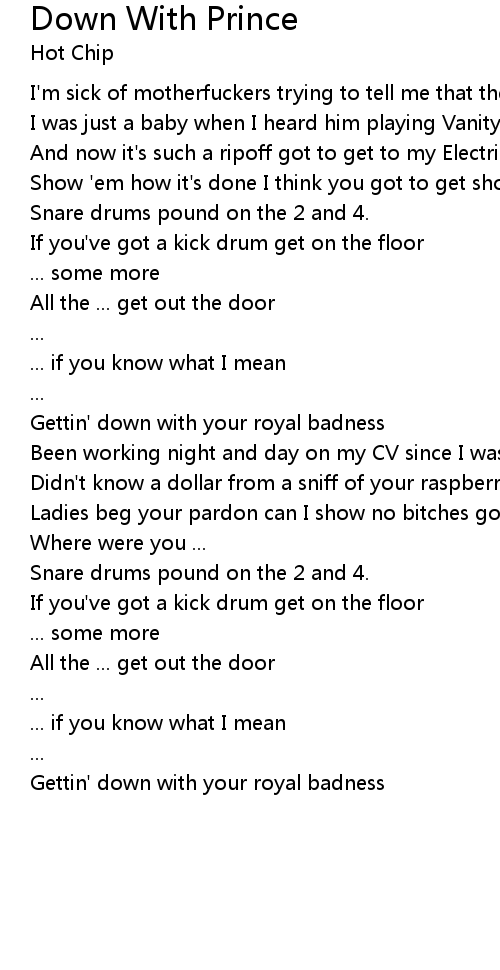 I'm sick of motherfuckers trying to tell me that they're down with Prince |