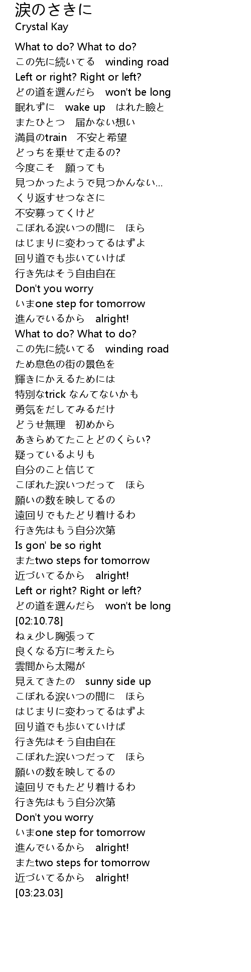 | [02:03.94] | どの道を選んだら won't be long |