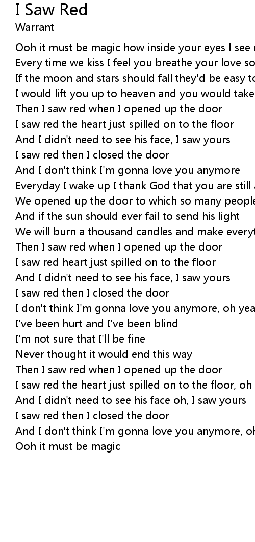 Then I saw red when I opened up the door |