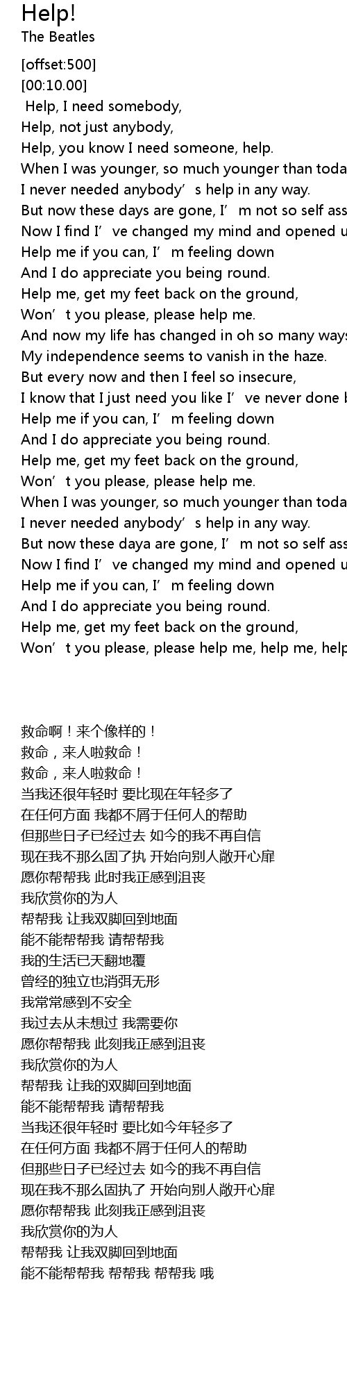 | [01:11.00] | Help me if you can, I’m feeling down |