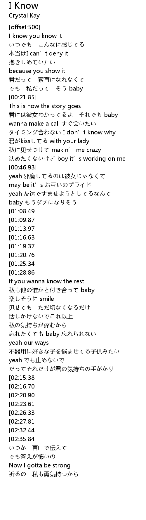 | [00:00.95] | I know you know it |