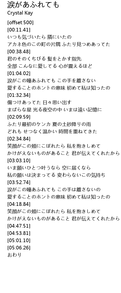 | [02:23.06] | どれも せつなく温かい 時間を重ねてきた |