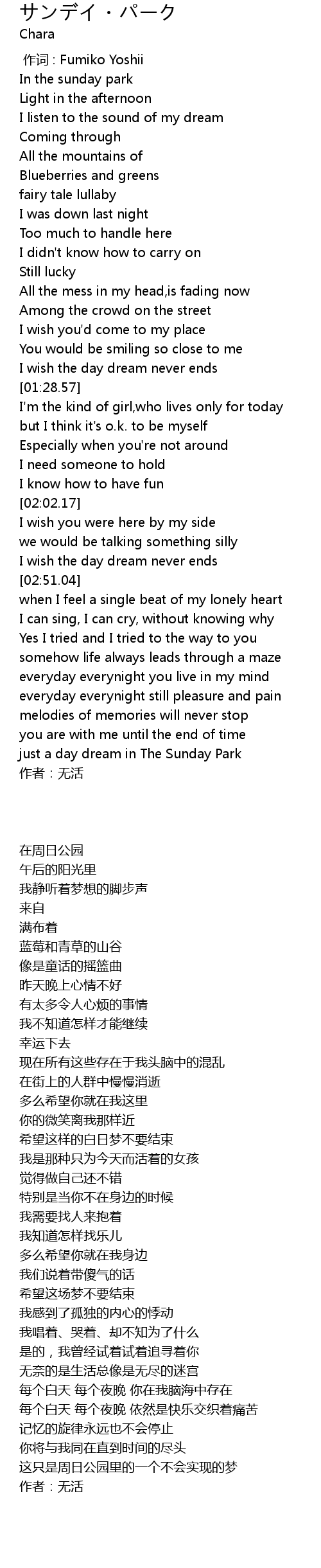 | [04:04.61] | 这只是周日公园里的一个不会实现的梦 |