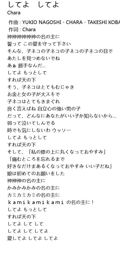 | [00:00.00] | 作曲 : YUKIO NAGOSHI・CHARA・TAKESHI KOBAYASHI |