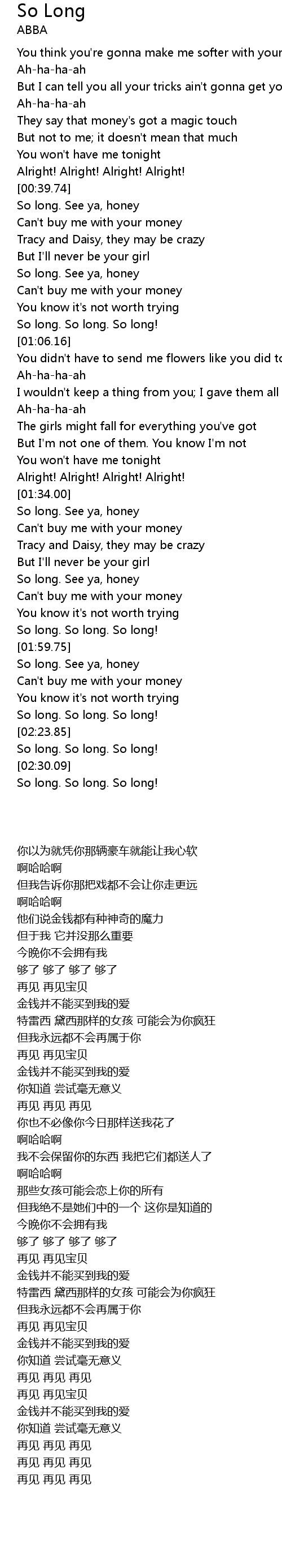 So Long 歌词