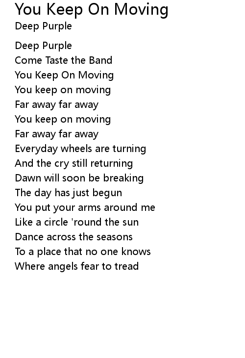| You keep on moving | |