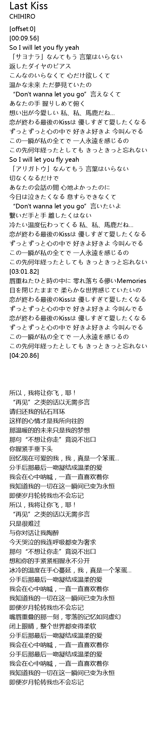 | [02:22.39] | lian zhong zui hou Kiss you ai |