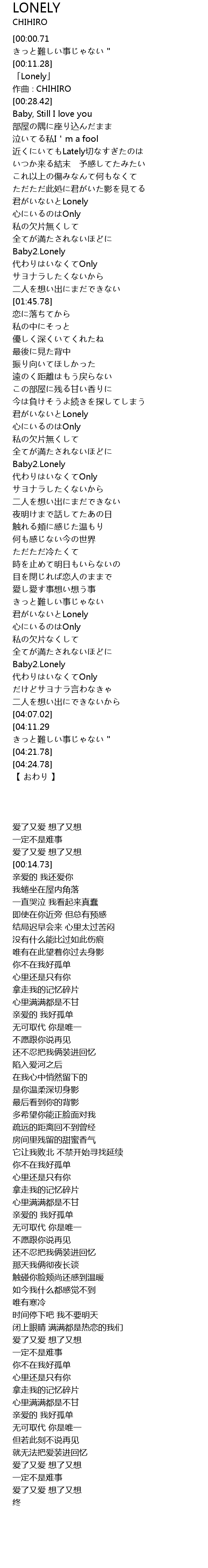 | [00:14.73] | 「Lonely」 |