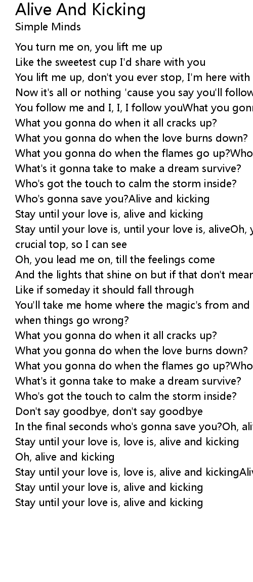 Stay until your love is, love is, alive and kickingAlive and kicking |