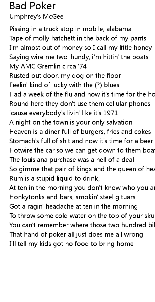 That hand of poker all just does me all wrong |