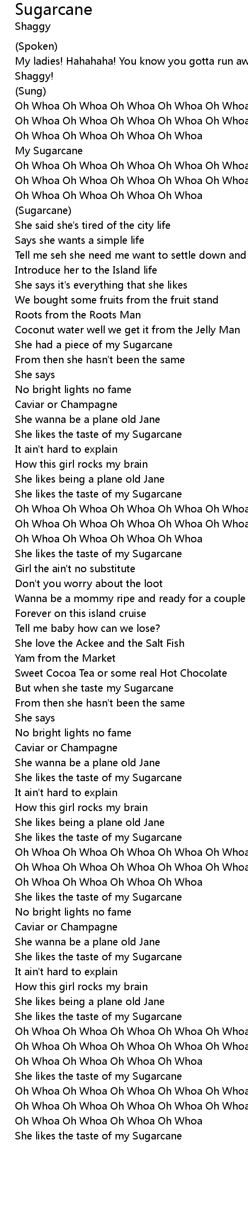 But when she taste my Sugarcane |