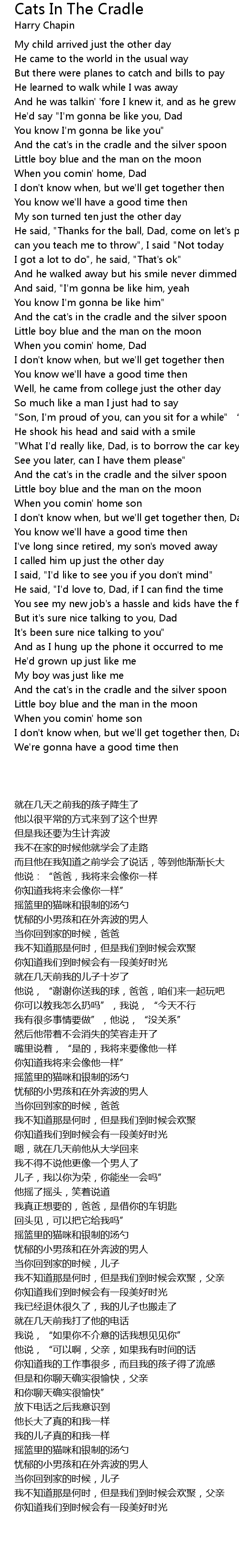 | 歌曲 | Cats In The Cradle |