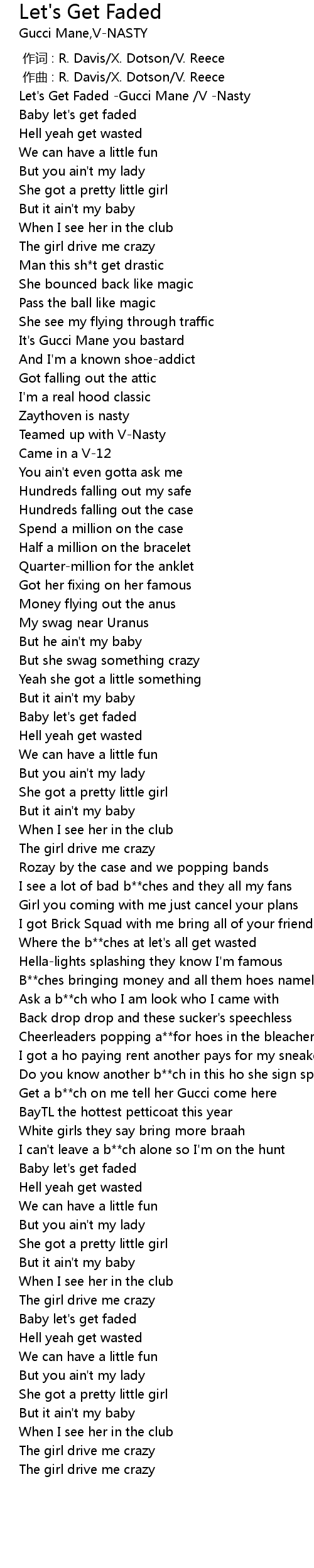| [00:00.00] | Let' s Get Faded Gucci Mane V Nasty |