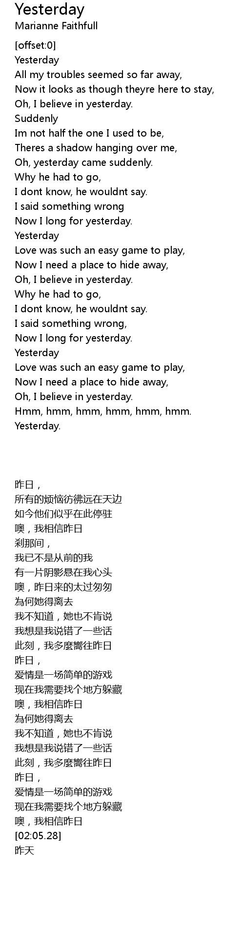 Now I long for yesterday. |