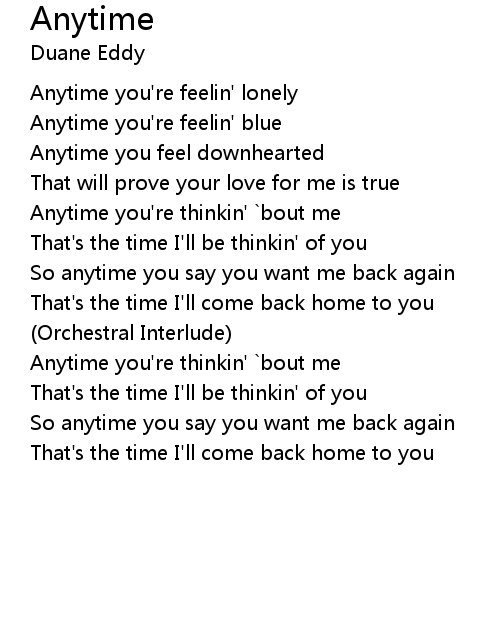 | Anytime you're feelin' lonely | |