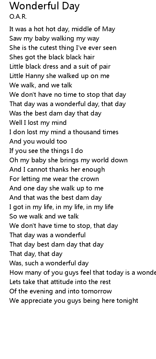 That day was a wonderful day, that day |
