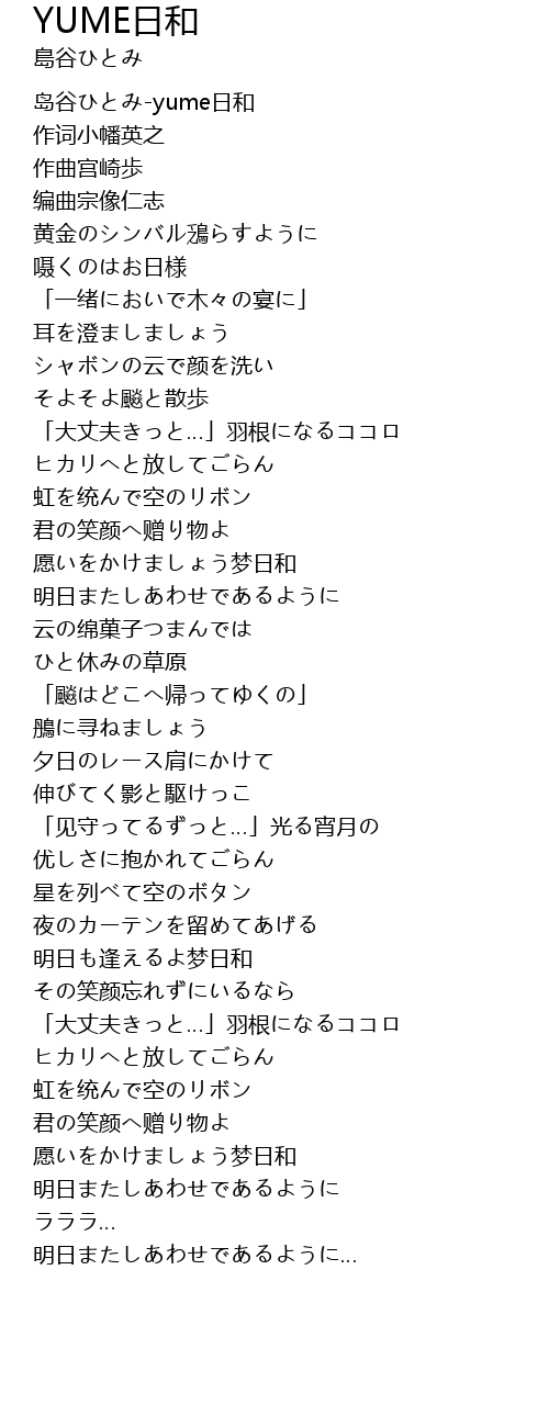 | [00:00.45] | 岛谷ひとみ-yume日和 |