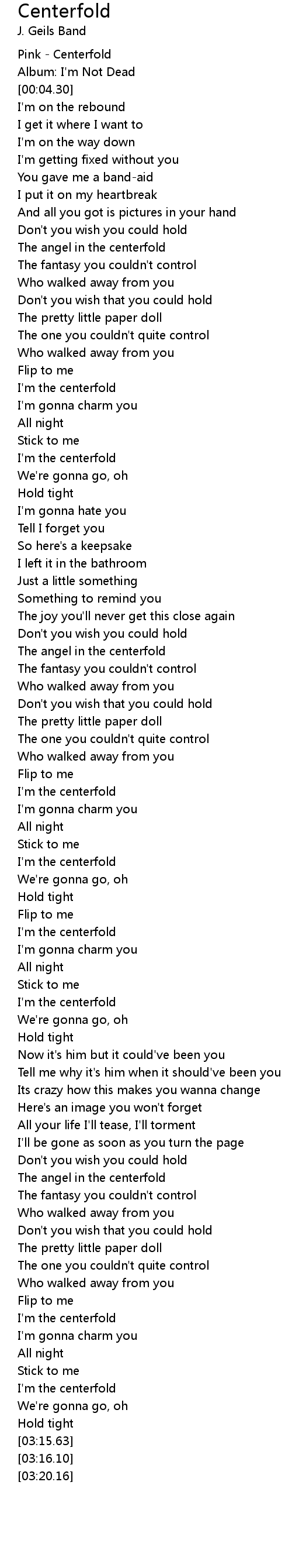 Pink - Centerfold |