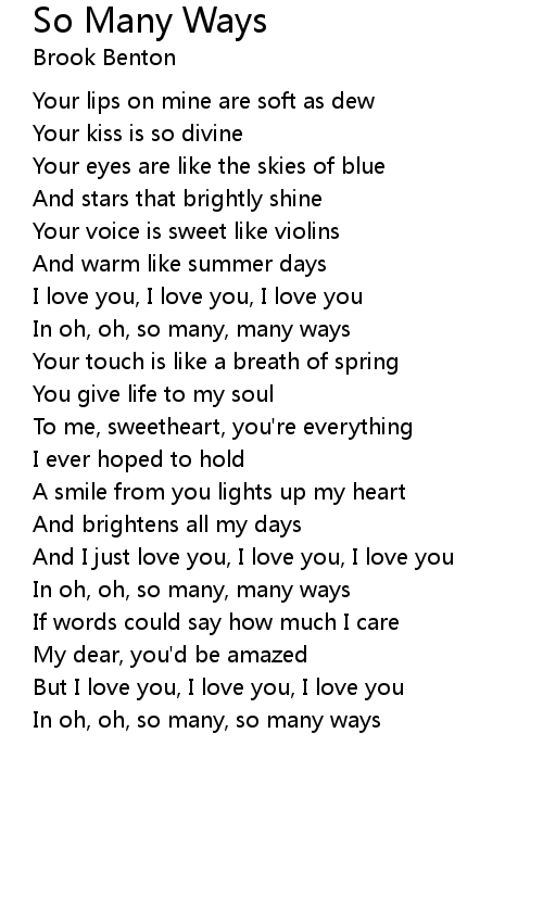 In oh, oh, so many, so many ways |
