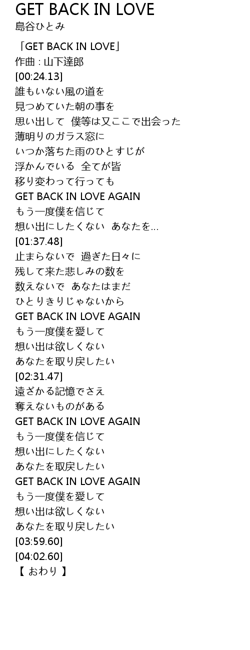 | [00:01.13] | GET BACK IN LOVE |