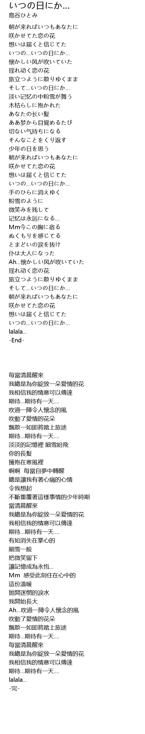 | 歌曲 | いつの日にか… |