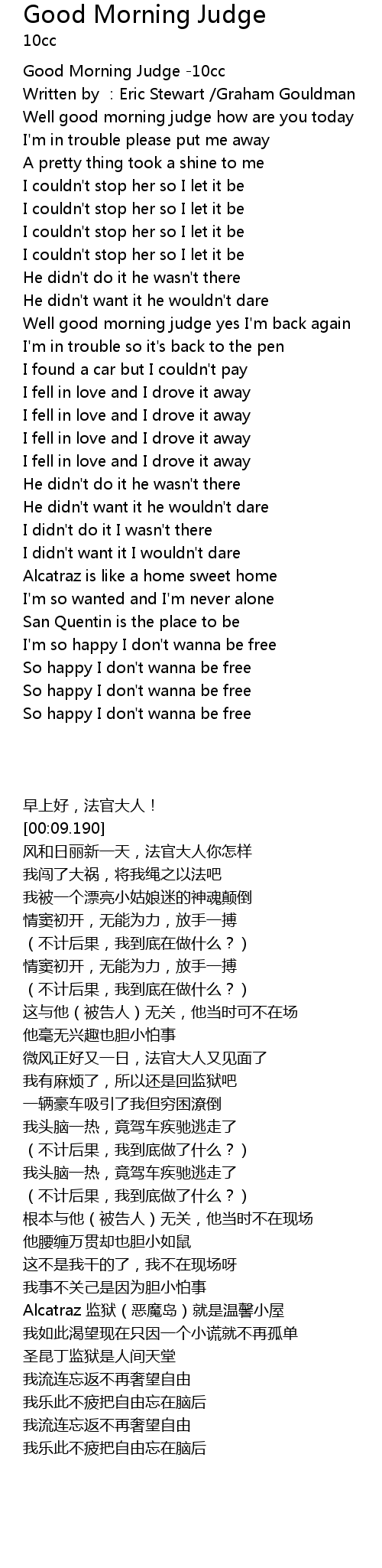 | [00:00.00] | Good Morning Judge -10cc |