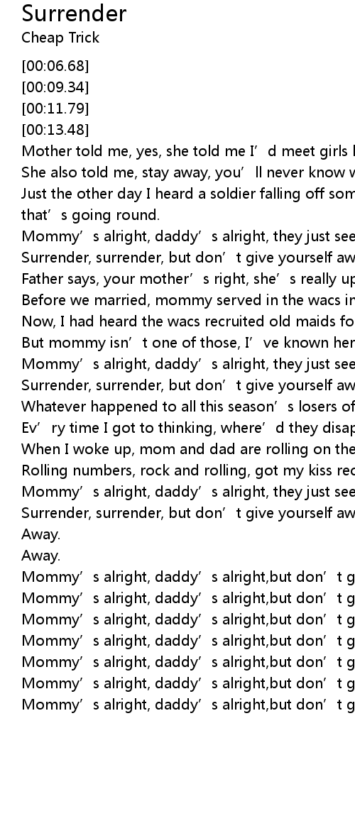 | [03:22.55] | Mommy' s alright, daddy' s alright, but don' t give yourself away |