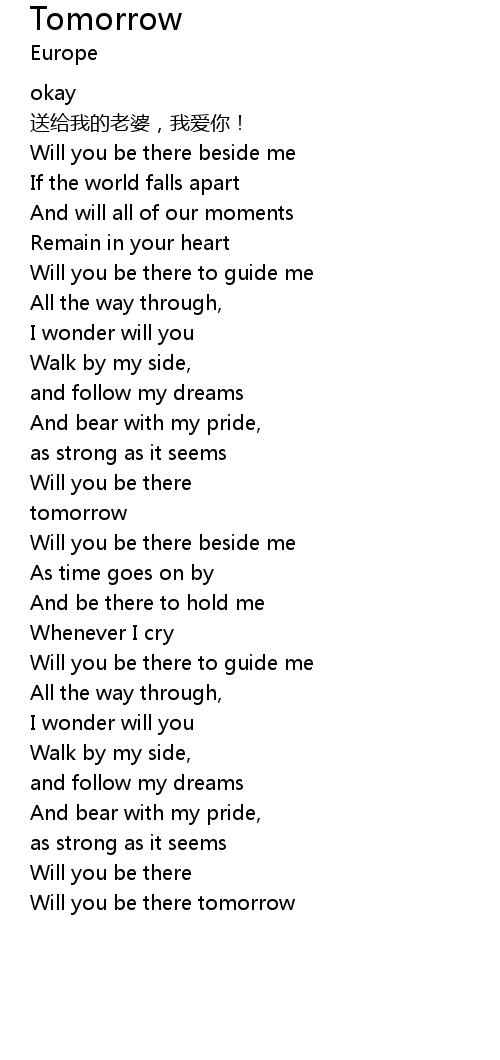 | [01:15.98] | tomorrow |