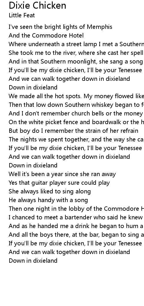 If you'll be my dixie chicken, I'll be your Tenessee lamb |