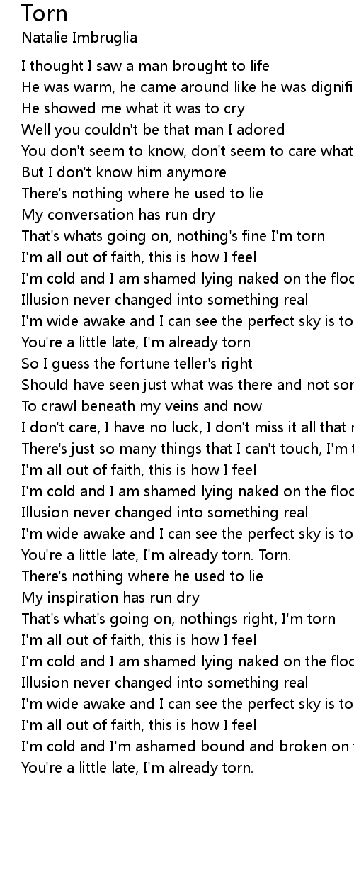[02:06.00] You're a little late, I'm already torn. Torn.