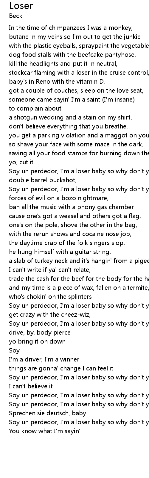 Soy un perdedor, I'm a loser baby so why don't you kill me, |