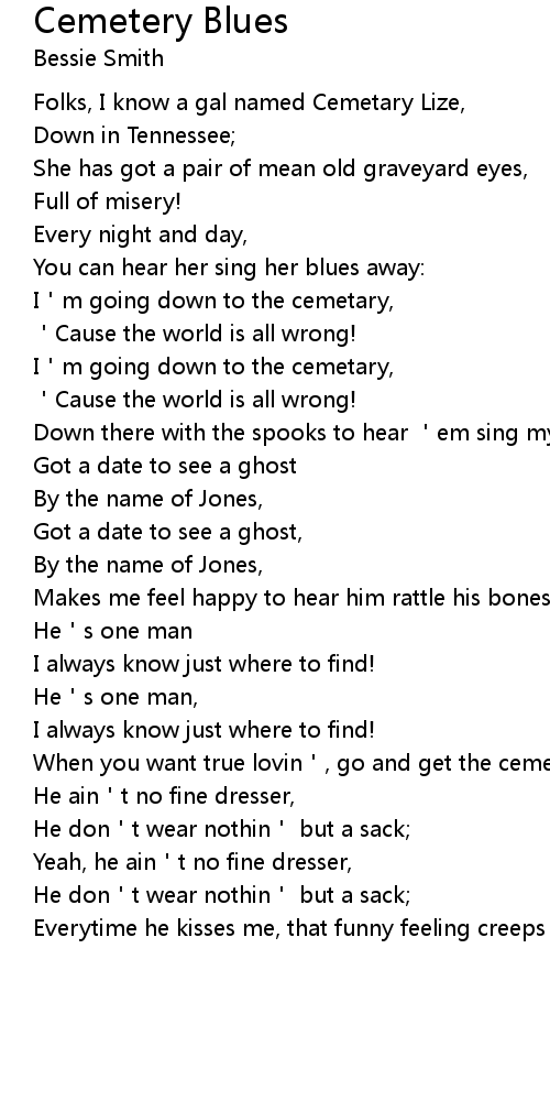 | Down there with the spooks to hear em sing my sorrow song. | |