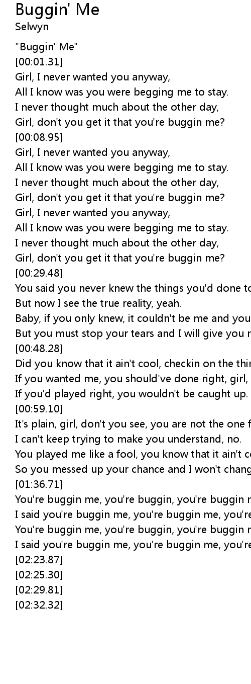 I said you're buggin me, you're buggin me, you're buggin me. |