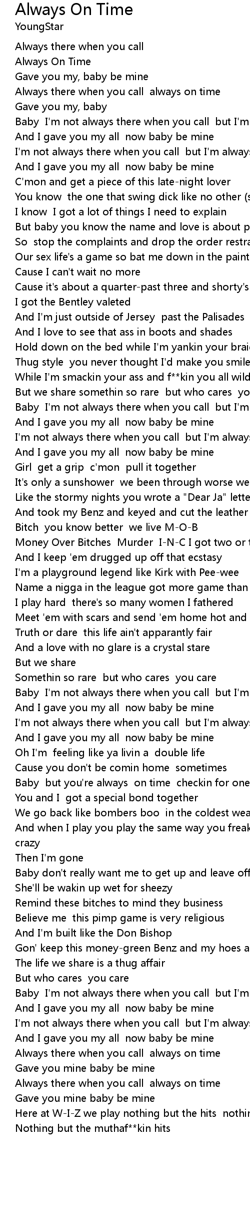 [03:18.42] Baby I'm not always there when you call but I'm always on time