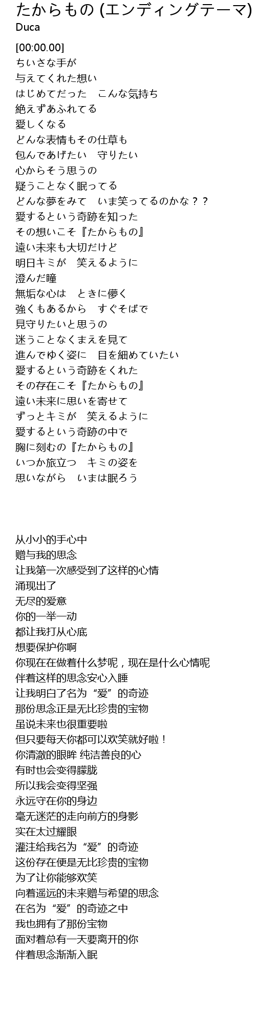 | [03:01.26] | その存在こそ『たからもの』 |