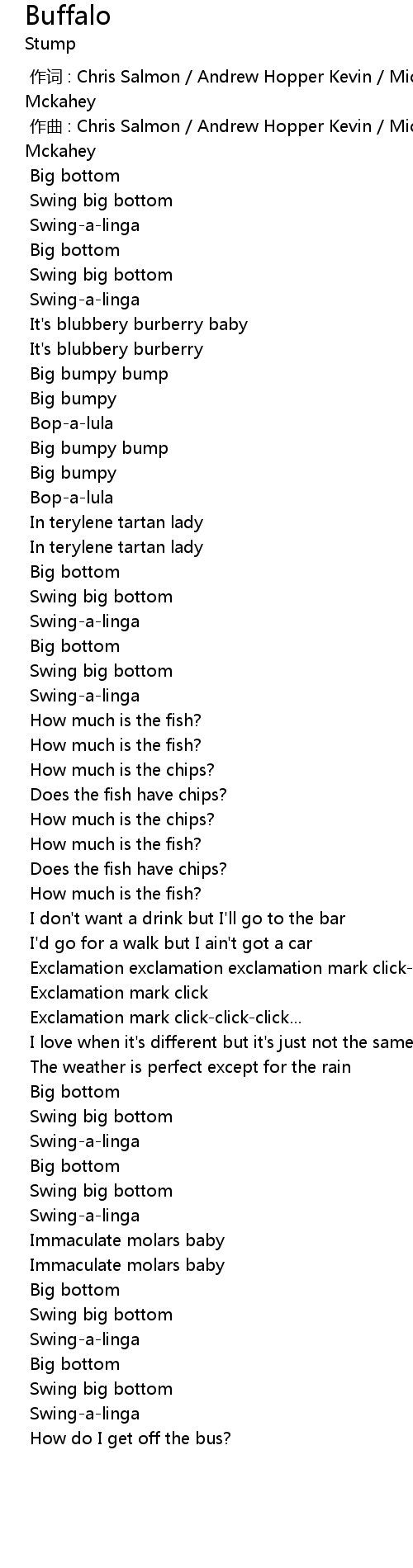 | [00:00.000] | 作词 : Chris Salmon / Andrew Hopper Kevin / Mick Lynch / Robert Mckahey |