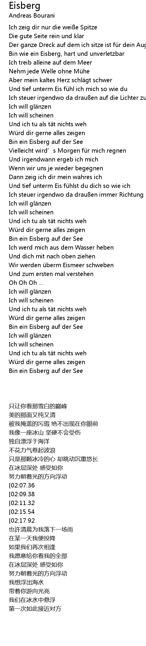 | [02:17.920] | Bin ein Eisberg auf der See |